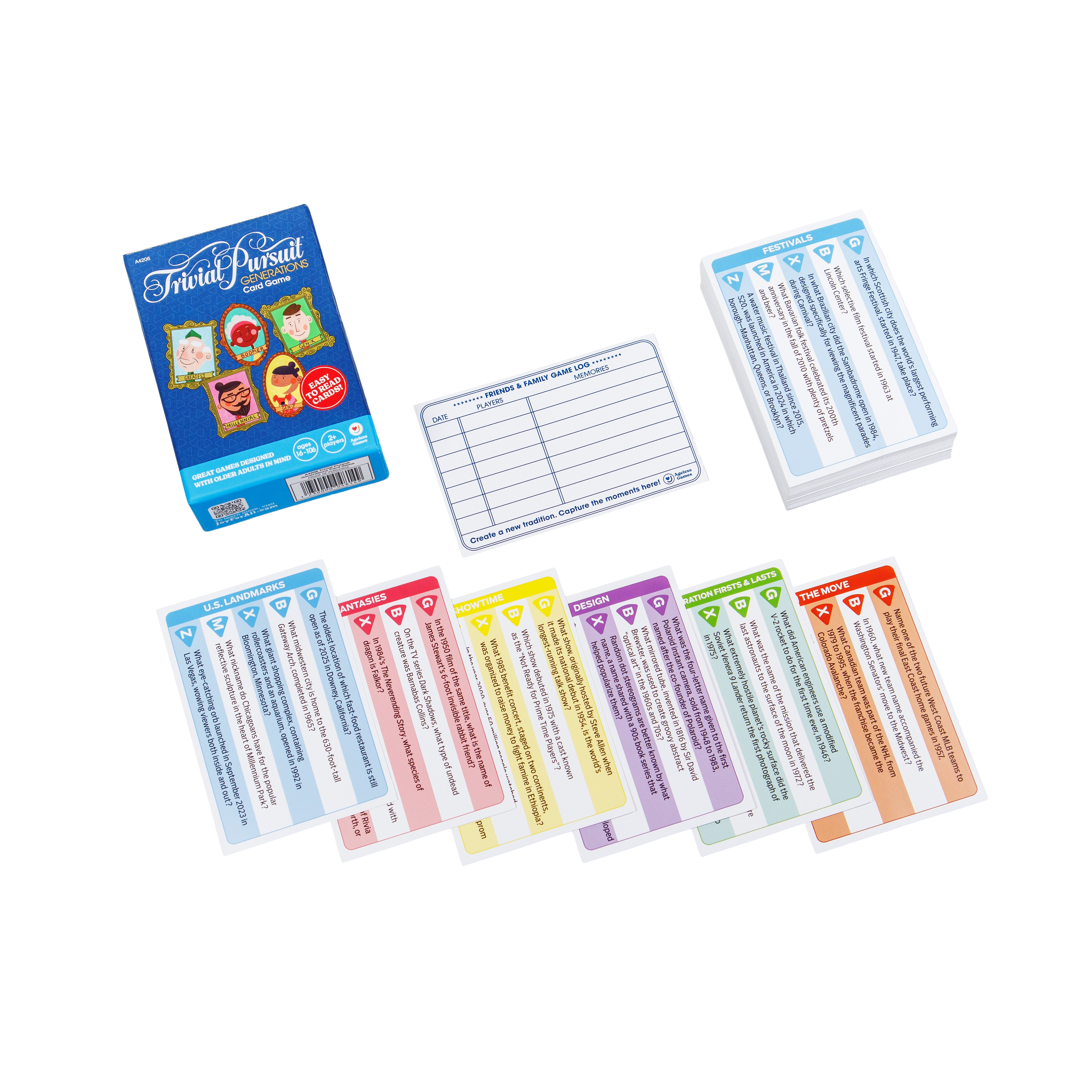 Keep the fun going with the Trivial Pursuit® Generations Card Game! Packed with new questions crafted for every generation, it’s a quick, laughter-filled way to bring everyone together. Play it on its own for fast-paced trivia fun or combine it with the full Trivial Pursuit® Generations board game for an even bigger family showdown.